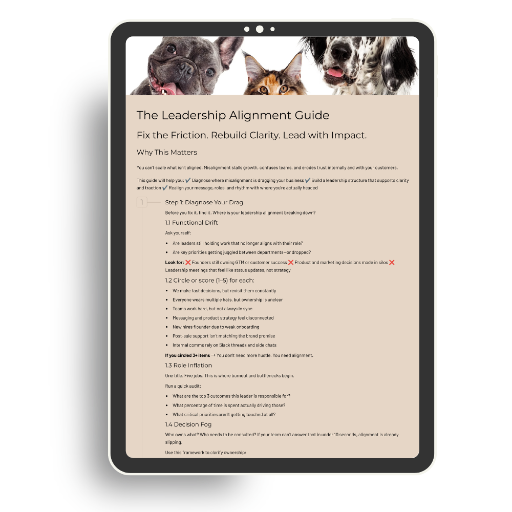 You can't scale what isn't aligned. Misalignment stalls growth, confuses teams, and erodes trust internally and with your customers. Fix the Friction. Rebuild Clarity. Lead with Impact. -