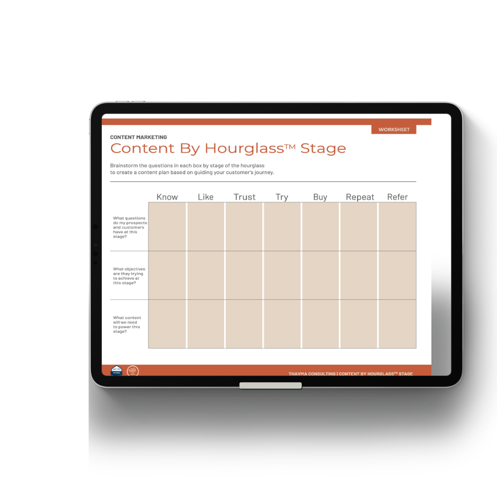 A practical guide to mapping a smarter, more strategic customer journey. The Marketing Hourglass™ helps you organize your marketing around how trust is built, from first impression to loyal advocate. Use this guide to assess what’s working, spot the gaps, and build a growth system that scales. -